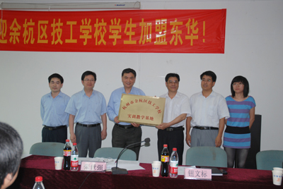 6月15日,東華集團與杭州市余杭區技工學校本著大力發展職業技術教育,實施以職業技能培養為主線的教育教學改革,為企業培養職業素質良好,操作技能過硬的應用型人才為目的,共同合作建立“余杭區技工學校實訓教學基地”,進行了“校企合作共建實習基地”授牌儀式。