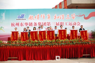 閉幕式上,總經理張世強、工會主席魯小林等高層向運動員頒獎并合影留戀。最后,張總作了熱情洋溢的講話,希望廣大員工在企業繼續發揚更快、更強、更高的體育精神,團結奮斗,早日把東華集團打造成世界一流鏈傳動企業。           記者 李春妹