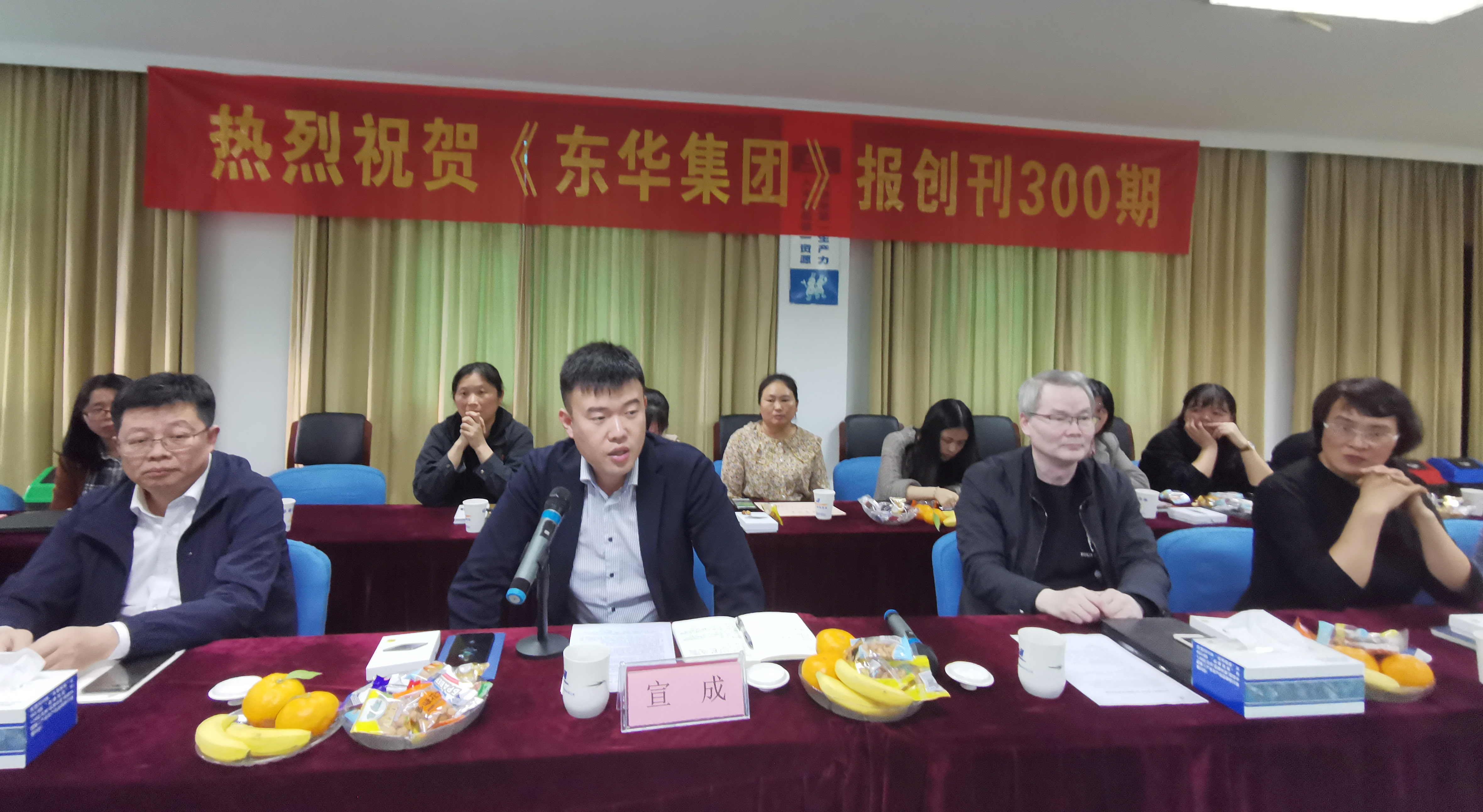 最后。副董事長宣成講話。他說,今天參加《東華集團》報創刊300期座談會,首先代表公司感謝東華報編輯、通訊員每個月的付出,我們的報紙才更有生命力,能出版300期。