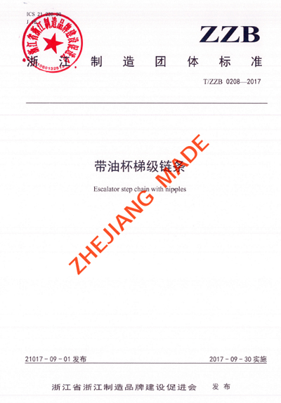 T/ZZB 0208—2017是一項(xiàng)鏈傳動(dòng)產(chǎn)品的團(tuán)體標(biāo)準(zhǔn),是鏈傳動(dòng)行業(yè)的首項(xiàng)“浙江制造”團(tuán)體標(biāo)準(zhǔn)。浙江恒久機(jī)械集團(tuán)和吉林大學(xué)鏈傳動(dòng)研究所兩家單位參加了該標(biāo)準(zhǔn)的起草,這項(xiàng)標(biāo)準(zhǔn)自2017年9月30日起開始實(shí)施。