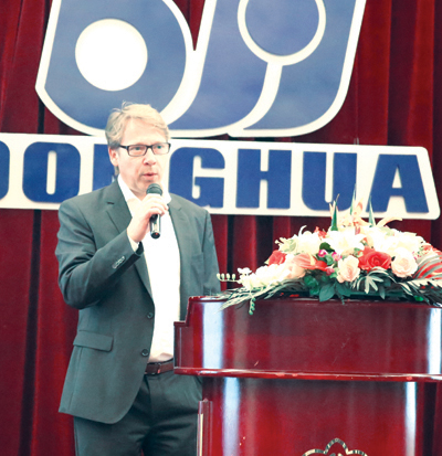 東華荷蘭公司總經(jīng)理Morskate就東華全球制造、品牌建設(shè)、銷售等進行了匯報和展望。