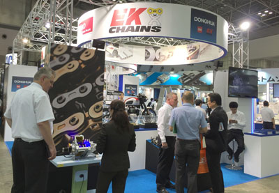 本次展會,東華鏈條集團積累了前幾次參展的經驗,不僅展出了各種常規(guī)標準鏈,還分別展出了三家公司的優(yōu)勢產品,如:東華分動箱鏈條、日本EK公司最新研發(fā)的3D摩鏈、德國KOBO公司生產的扶梯鏈、汽車鏈條等。展會還特別展示了裝有分動箱鏈條的分動箱裝置及裝有日本EK公司生產的摩鏈的TRIUMPH摩托車,吸引了大量各國參展客戶的觀摩與青睞,這也預示著東華鏈條正朝著高、精、尖鏈傳動方向發(fā)展。東華鏈傳動產品的不斷創(chuàng)新發(fā)展,進一步展示了東華鏈條作為中國鏈傳動行業(yè)領頭羊的形象。
