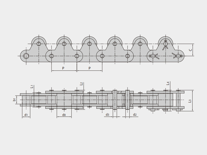 ● 自由流動鏈是指在運行過程中實現鏈條移動速度不變的情況下,被輸送的物品可按照使用者的要求控制移動節拍的鏈條;在鏈條運行速度一定的情況下,可以根據具體使用要求調整輸送物品的速度快慢。主要包括:倍速鏈、帶大滾輪輸送鏈、帶側滾輪輸送鏈、帶特殊滾輪輸送鏈、帶頂滾輪短節距輸送鏈、帶頂滾輪雙節距輸送鏈等。