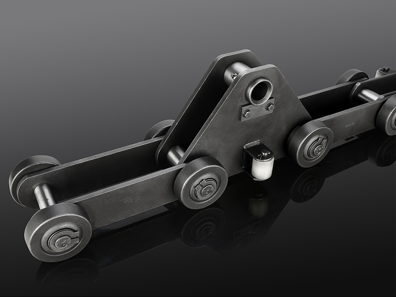 6.推頭鏈條:通過優化設計,產品廣泛應用于噴漆、焊裝、烘房等工序,滿足承載車身的小車在軌道上平穩運行。